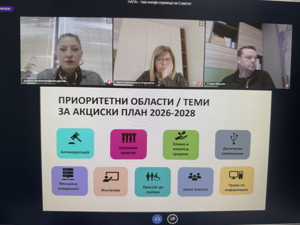 Во пресрет на отпочнување на процесот на ко-креирање на седмиот Национален акциски план за Партнерство за отворена власт 2026-2028 година, Советот на оваа седница ги усвои следните документи: Постапка за спроведување консултации со засегнати страни за креирање на нови приоритети и заложби во рамките на процесот „ПАРТНЕРТСТВО ЗА ОТВОРЕНА ВЛАСТ” со временска рамка, Јавен повик за пријавување на учество во процесот на ко-креирање на Националниот акциски план за Партнерство за отворена власт 2026-2028година со Пријава, Критериуми за оценување на релевантноста и поврзаноста на заложбите од процесот на ко-креирање на акциски план за Партнерство за отворена власт со начелата на Партнерството за отворена власт и Едукативен материјал за Партнерство за отворена власт.